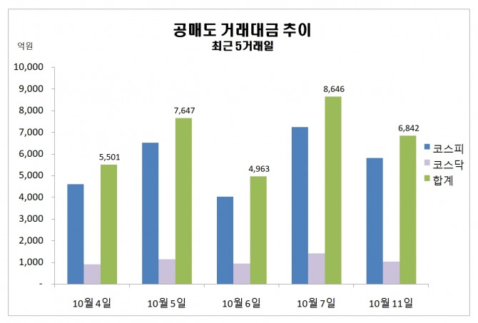 이미지 확대보기이날 공매도 거래대금은 전 거래일 보다 1803억원 감소한 금액이다.