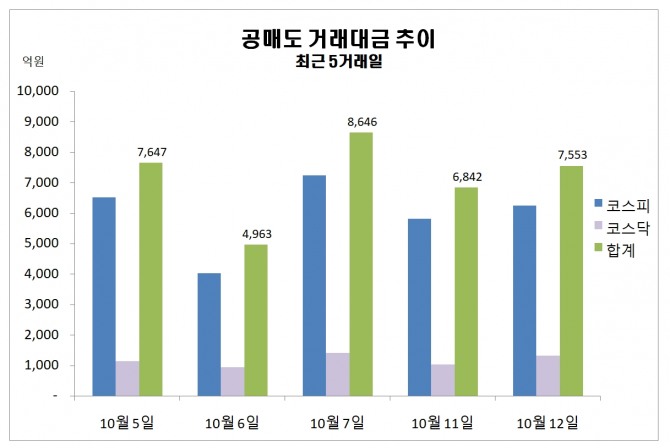 13일 한국거래소에 따르면 지난 12일 주식시장에서 공매도 거래대금 규모는 7552억원을 기록했다.