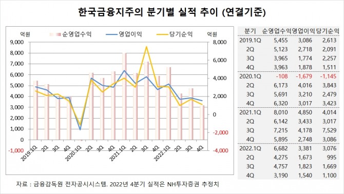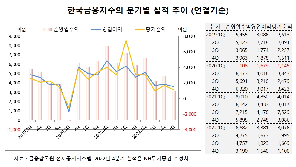 NH투자증권은 한국금융지주의 올해 4분기 연결기준 순영업수익이 3190억원, 영업이익이 1540억원, 당기순이익이 1100억원에 이를 것으로 추정하고 있습니다.