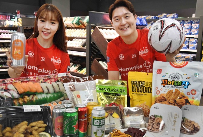 마이홈플러스 멤버 대상으로는 양념육 안주류 9종을 최대 30% 할인하고 건어물 안주류도 최대 50% 인하한다. ‘세계맥주 골라담기’ 행사에서는 하이네켄, 코젤 등 60여종의 세계맥주를 4캔 구매시 9000원에 판매한다.
