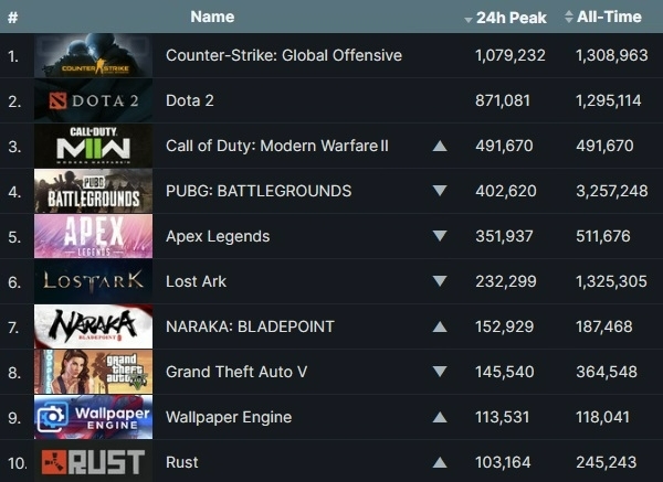 글로벌 게임 유통망 스팀에서 미국 액티비전의 신작 '콜 오브 듀티: 모던 워페어 2' 리마스터판이 배틀로얄 슈팅 모드 '워존 2.0'이 업데이트된 후 주간 최다 동시접속 3위에 올랐다.