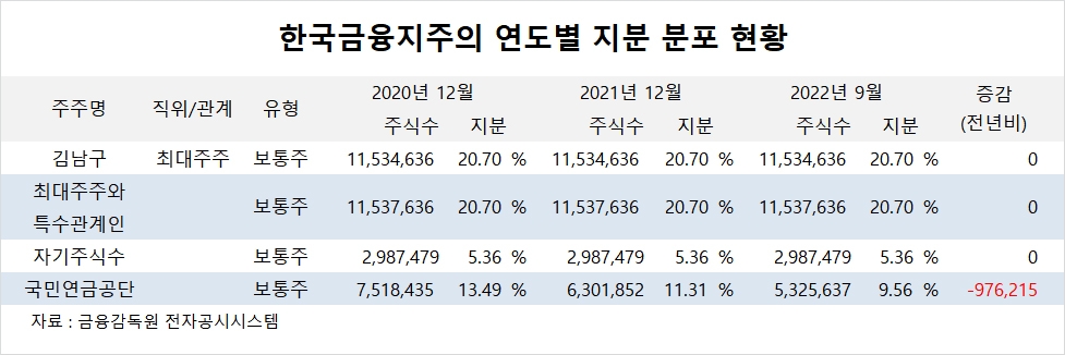 한국금융지주는 국민연금공단이 지분 9.56%를 갖고 있습니다.