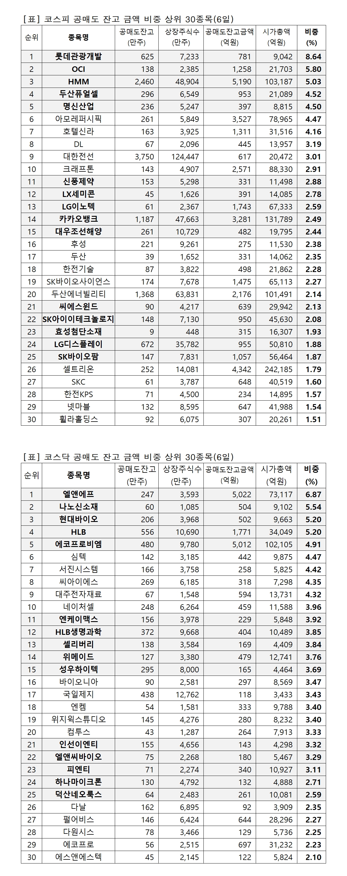 이미지 확대보기유가증권시장 시가총액 대비 공매도 잔고금액 비중(6일)