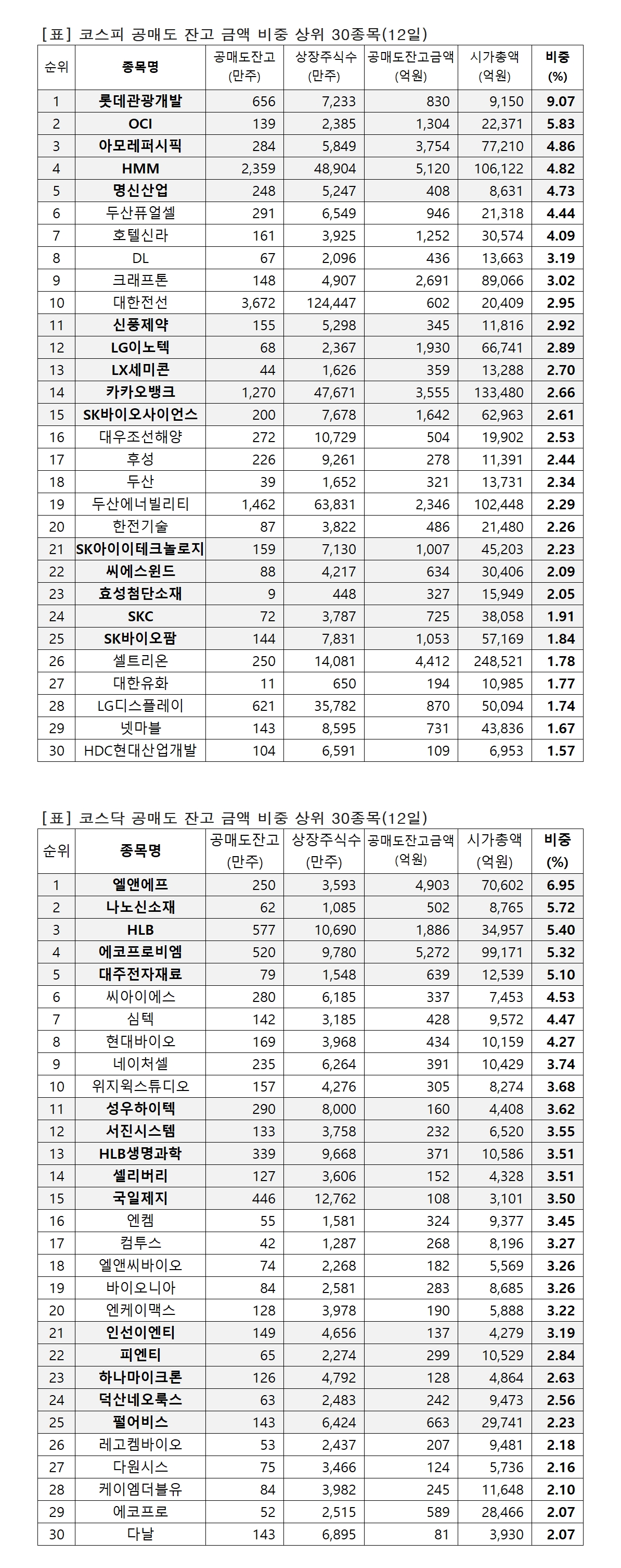 이미지 확대보기유가증권시장 시가총액 대비 공매도 잔고금액 비중(12일)
