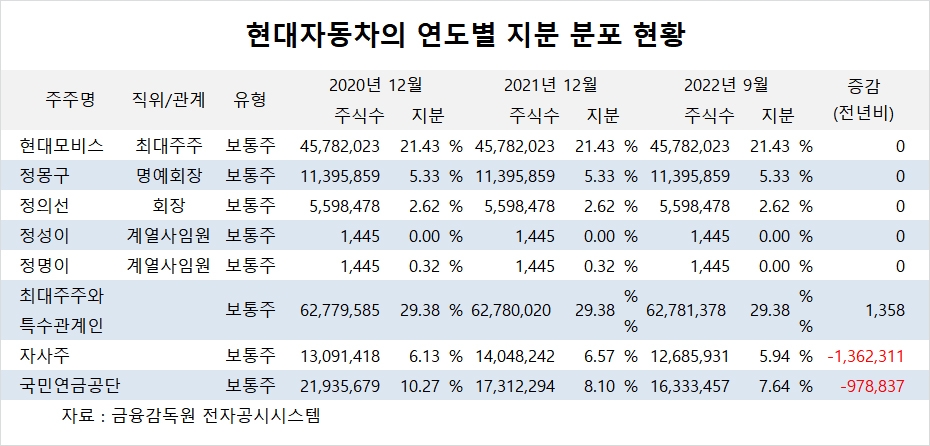 이미지 확대보기현대자동차의 최대주주는 현대모비스로 지분 21.43%를 보유하고 있습니다.