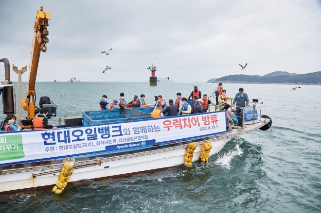 이미지 확대보기30일 관련업계에 따르면 현대오일뱅크는 지역 상생활동의 일환인 '바다 가꾸기 사업'이 올해로 20회를 맞았다. 해당 사업은 우럭 치어를 본사가 위치한 서산 지역 일대 앞바다에 방류하는 사업으로, 지역 어민들의 삶을 지원하고 어업자원 확대에 추구하는 것을 목표로 삼고 있다.