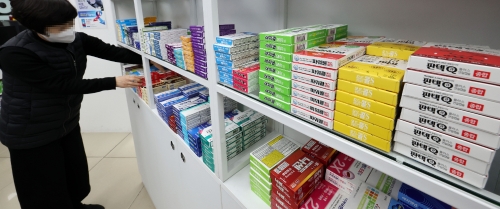 27일 오후 서울 종로구 시내의 한 약국에서 약사가 종합감기약을 정리하고 있다.(사진=연합뉴스)