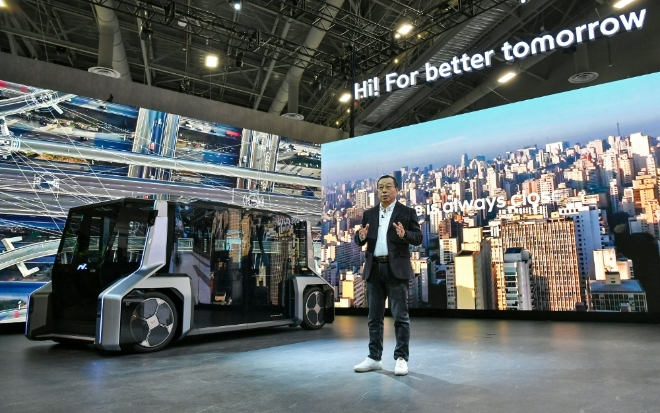 조성환 현대모비스 사장이 CES2023에서 '모빌리티 플랫폼 프로바이더'로 도약한다는 '뉴 모비스' 비전을 발표하고 있다. 사진=현대모비스