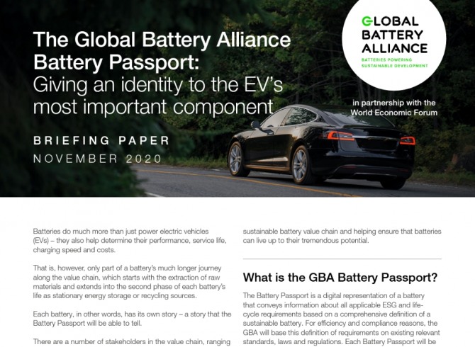 GBA는 2020년 열린 다보스포럼에서 배터리 전자여권의 도입을 제안한 이래 지속가능한 글로벌 배터리 공급망 구축을 위한 방안으로 배터리 전자여권 개발 작업을 주도하고 있다.