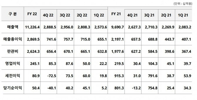 신규 투자 및 사업과 관련된 ‘공통 및 기타’ 부문 매출은 1038억원으로 전년 동기 대비 0.7% 증가했다. 영업손실은 89억원 개선한 545억원으로 집계됐다.