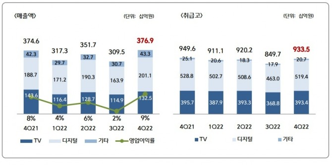 또 다른 업계 관계자는 “패션, 건강식 등 고마진 상품 비중 감소와 엔데믹 영향에 따른 온라인 매출 감소로 전체 매출이 줄었다”며 “TV 송출수수료로 늘어 실적에 반영됐다”고 말했다.