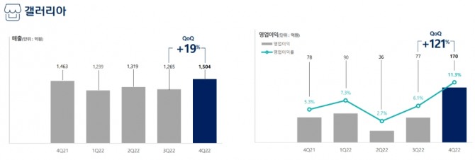 갤러리아 관계자는 "일상 회복으로 남성, 여성 패션의류 소비가 증가하고 지속적인 명품 수요와 강점인 VIP마케팅이 영향을 끼친 것으로 보인다"라며 "기존 비즈니스 영역 외에 유통 서비스 부분 신사업을 적극 발굴해 기업 경쟁력을 지속적으로 강화하겠다"고 말했다.