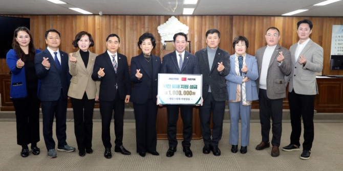이미지 확대보기지난21일 인천시 계양구 의회에서는 튀르키예, 시리아 국가에 지진으로 어려움을 호소하는 국민들에게 조금이나마 보태고자 성금을 모아 대한적십자사에 전달했다. (사진=계양구 의회) 인천시 계양구 전체 의원이 21일 튀르키예·시리아의 큰 강진으로 어려움을 겪고 있는 피해 지역 복구 및 이재민 지원을 위해 성금 100만 원을 대한적십자사에 기탁했다.