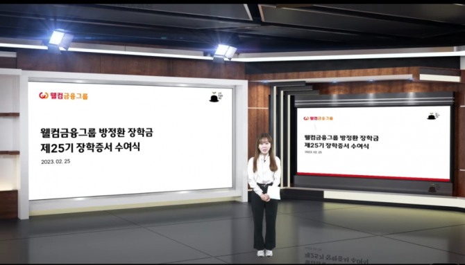 웰컴금융그룹은 '제25기 방정환 장학금 온택트 장학증서 수여식'을 개최했다고 27일 밝혔다. 온택트 장학증서 수여식은 지난 25일 가상스튜디오에서 유튜브 라이브 중계로 진행됐으며 손종주 웰컴금융그룹 회장이 직접 참석해 제25기 방정환 장학생으로 선발된 장학생들에게 축하 인사를 전했다.