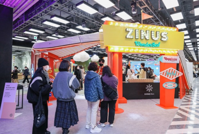 지누스는 브랜드 인지도 제고를 위해 지난해 현대백화점 신촌점, 디큐브시티 등에 지누스 매장을 열었다. 더현대 서울과 천호점, 킨텍스점, 울산점 등 7개 점포에서는 팝업 스토어를 운영한바 있다. 올해 2월부터는 미아점에서 대규모 고객 체험형 팝업 스토어를 진행 중이며 중동점 타 점포에서도 순차적으로 진행할 예정이다. 회사 측은 지난해 9월부터 현재까지 진행된 팝업 스토어를 찾은 고객만 40여 만명에 이른다고 설명했다.