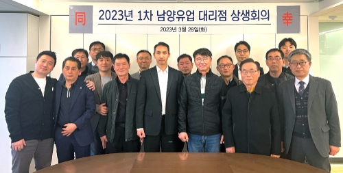 이미지 확대보기김승언 남양유업 경영지배인 등 회사 측 관계자 7명과 대리점주 대표자 9명이 참여한 가운데 진행된 이번 회의는 지난해 동의의결 이행결과를 점검하고 영업 경쟁력 개선을 위해 추진 중인 활동들을 공유했다. 이와 함께 현재 어려운 시장상황을 극복하기 위한 현안에 대해서도 논의하는 시간을 가졌다.