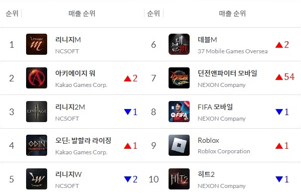 [모바일 게임 매출 순위] 3월 5주차, '던파 모바일' 1주년 맞아 톱10 복귀