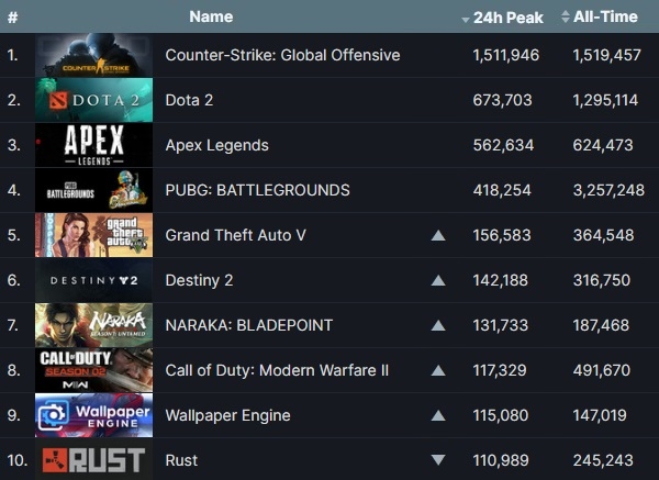 게임이 아닌 밸브 코퍼레이션 자체 앱으로 등록된 '소스 SDK 베이스 2007'이 동시 접속 21만337명으로 게임으로 치면 5위를 차지했다. 해당 앱은 'GTA 5' 등 일부 게임에서 이용자들이 보편적으로 활용하는 MOD(이용자 창작 기능)과 연동돼 게임 실행시 필수 접속해야 하는 앱으로 알려져 있다.