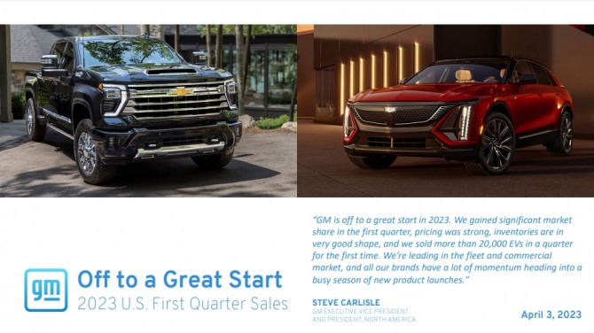GM의 지난 1분기 판매량은 60만3208대였는데 이 가운데 전기차가 2만670대를 차지했기 때문이다. GM은 “분기별 전기차 판매량이 2만대를 돌파한 것은 처음있는 일”이라고 밝혔다.