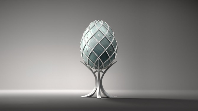 탄소 섬유로 만든 로얄 에디션 달걀 껍질에 '춤추는 코끼리' 모티브 조각