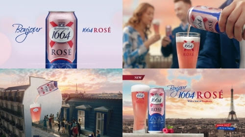신규 광고는 국내 소비자를 위해 특별 제작됐다. 프랑스 파리를 배경으로 고유의 정취와 분위기를 통해 ‘프랑스 대표 밀맥주’임을 알린다. 핑크빛 1664 로제가 소용돌이치며 잔에 담기는 역동적인 장면 연출을 통해 시각적으로도 새로운 주질임을 전한다. ‘1664 로제’는 라즈베리와 복숭아의 상큼하고 달콤한 향이 담긴 밀맥주다. 파인 아로마 홉과 향신료인 코리앤더의 섬세하고 우아한 향미가만나 조화를 이룬다.