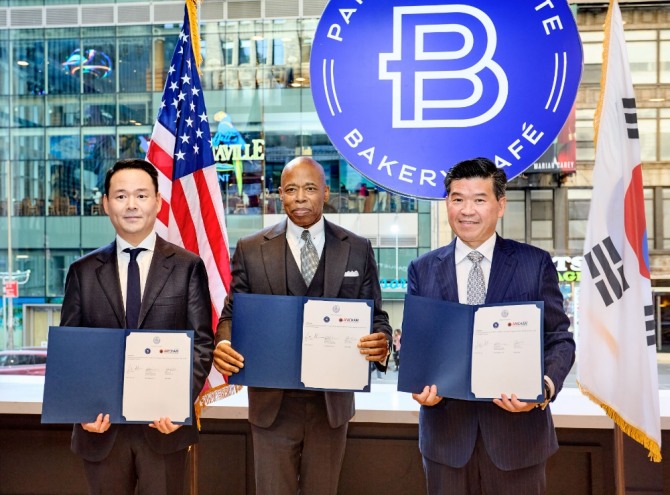 이미지 확대보기SPC 파리바게뜨는 미국 뉴욕시, 주한미국상공회의소(AMCHAM, 이하 암참)와 3자간 양해각서(MOU)를 체결했다고 14일 밝혔다.