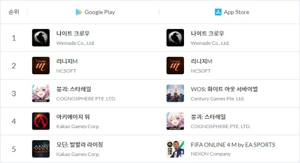 앞서 나이트 크로우는 출시 직후 애플 매출 1위를 기록했다. 5월 초 리니지M과 1위 자리를 두고 다투는 모습을 보였다. 리니지M 외에도 호요버스의 신작 '붕괴: 스타레일'이 톱3에 지속적으로 머무르며 두 게임과 경쟁하고 있다.