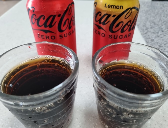 코카-콜라 제로(왼쪽)과 코카-콜라 제로 레몬(오른쪽). 사진=김성준 기자.이미지 확대보기