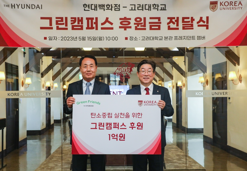 김동원 고려대 총장은 “지난 해에 이어 올해도 현대백화점과 함께 ESG 가치 실천을 위한 공동 사업을 진행하게 돼 기쁘게 생각한다”며 “양 기관이 보유한 인프라와 자원을 적극 활용하여 친환경적인 그린캠퍼스를 구현하고 다양한 사회 공헌 활동을 적극 추진하겠다.”고 말했다