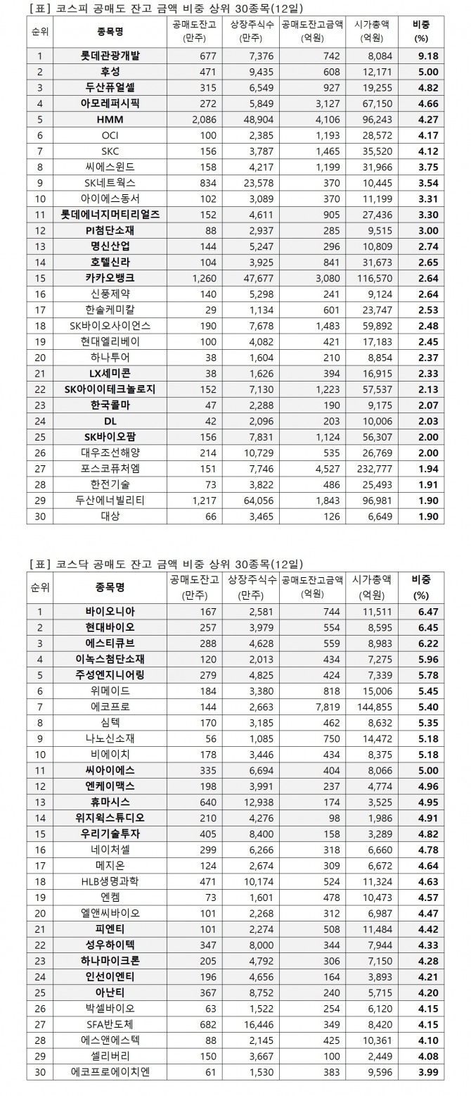 이미지 확대보기유가증권시장 시가총액 대비 공매도 잔고금액 비중(12일)