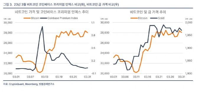 오유리 빗썸경제연구소 정책연구팀장은 "최근 비트코인은 은행 시스템의 위기와 경기 침체가 우려되는 상황에서 안전자산인 금과의 커플링 현상을 보이고 있다"고 설명하면서 "올해 남은 기간 동안 비트코인의 가격 상승이 전망되지만, 미 국회의 부채 한도 합의 내용에 따라 단기적인 가격 변동성이 발생할 수 있을 것"이라고 밝혔다.