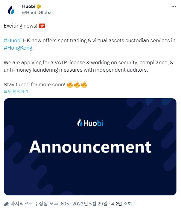 당시 이 거래소는 "홍콩의 웹3.0 규제는 전 세계적으로 암호화폐가 널리 채택되는 데 기여할 것입니다. 후오비는 홍콩의 규제 당국과 지속적으로 협력하여 활발한 웹3 허브 개발을 지원할 것입니다"라고 말했다.