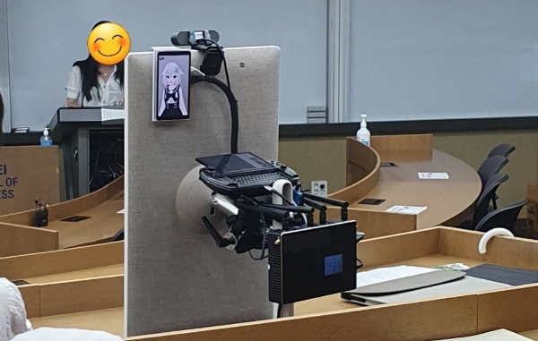 사진 속의 고세구는 스크린에 아바타를 띄운 형태로 함께했다. 스크린 앞에 '고세구'라는 명찰이 달린 것으로 보아 청강(비공식 적으로 강의를 듣는 것), 혹은 초청 형태로 참여해 실시간으로 교수, 학생들과 소통했을 것으로 짐작된다.
