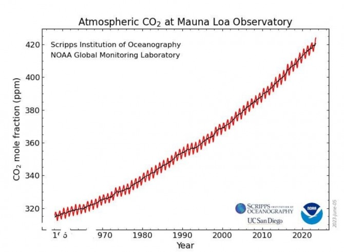 NOAA가 발표한 이산화탄소 수치를 나타내는 킬링곡선. 사진=NOAA