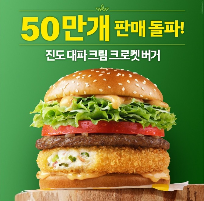 이미지 확대보기맥도날드는 지난 6일 전라남도 진도 대파를 활용한 ‘진도 대파 크림 크로켓 버거’를 선보였다. 진도 대파 크림 크로켓 버거는 일반 대파보다 향이 진한 진도 대파를 크로켓과 소스에 활용해 만든 메뉴로 출시 이후 고객들의 즉각적인 호응을 얻으며 일주일 만에 50만 개 판매를 돌파했다.