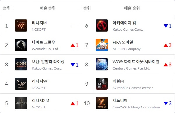앱 통계 분석 플랫폼 모바일인덱스에 따르면 NC '리니지2M'이 14일을 기점으로 구글 매출 5위에 입성, 매출 톱5에 '리니지M', '리니지W'와 더불어 3부작이 모두 올랐다. 이들과 더불어 2021년 대한민국 게임대상을 수상한 '오딘: 발할라 라이징'이 꾸준히 대항마로서의 위치를 점하고 있다.