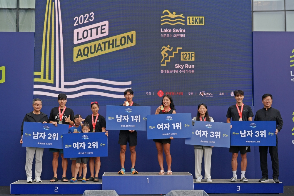 이미지 확대보기16일 롯데월드타워에 따르면 이날 도심 속 이색 스포츠 대회 ‘2023 롯데 아쿠아슬론’을 개최했다.