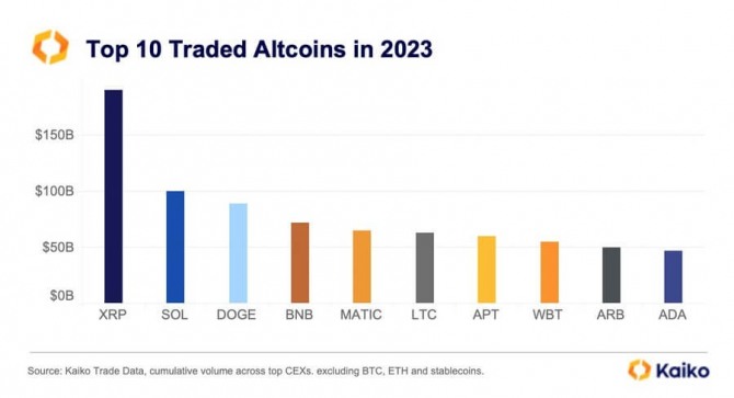 이미지 확대보기블록체인 분석 회사인 카이코(Kaiko)는 리플의 XRP 토큰이 올해 거래량 1500억 달러(약 191조250억 원)를 초과해 가장 많이 거래된 알트코인이라고 보고했다.