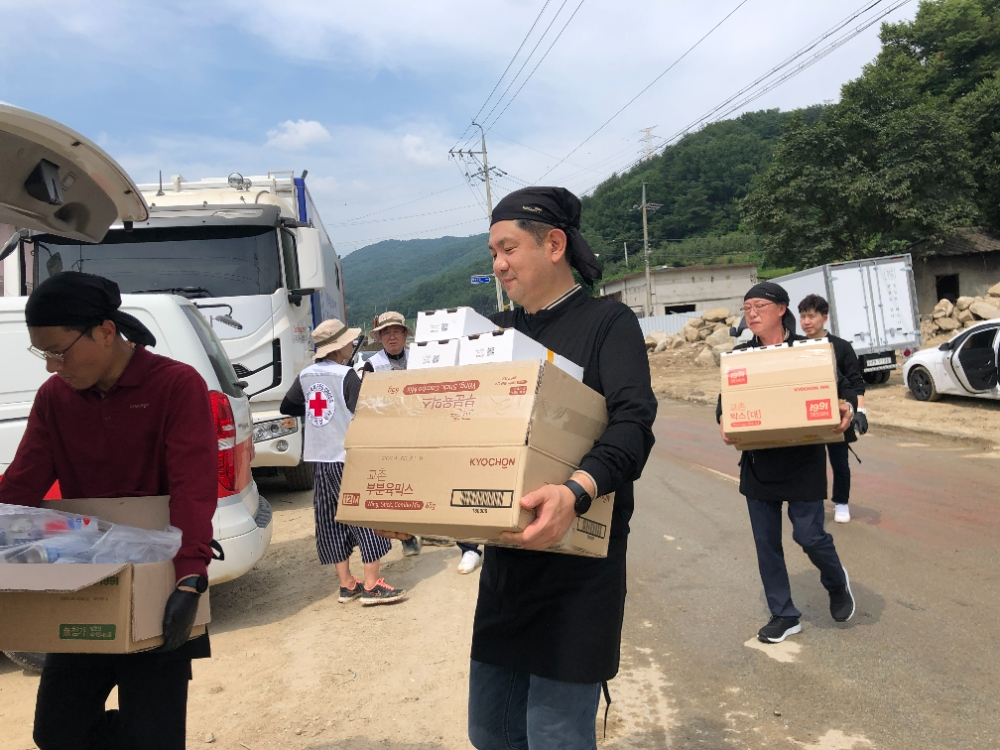 교촌 '바르고 봉사단' 수해 현장 방문…수재민 및 자원봉사자 지원 활동도 펼쳐