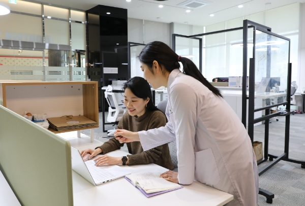 이미지 확대보기푸드테크 밸리에서 멘토링을 진행 중인 롯데중앙연구소 연구원. 사진=롯데중앙연구소