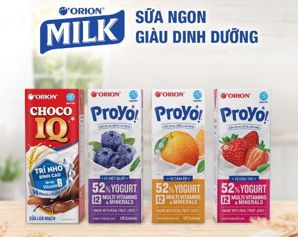 이미지 확대보기오리온이 베트남 시장에 선보이는 초콜릿맛 몰트 우유 ‘Choco IQ’와 천연과일 발효 요거트 음료 ‘Proyo!’. 사진=오리온