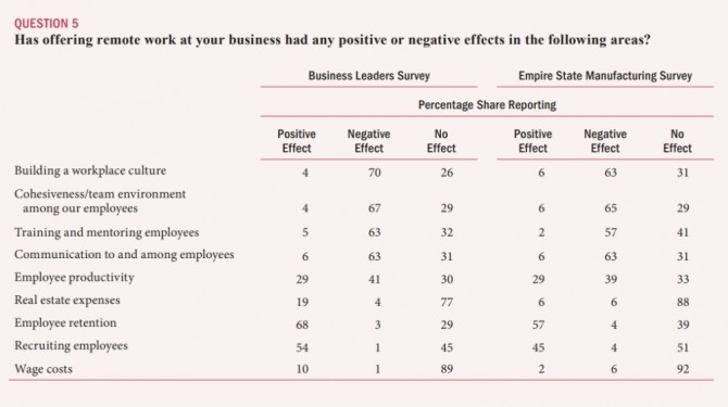 이번 뉴욕 연은 보고서의 핵심은 미국 기업들은 대부분 적어도 당분간은 재택근무제를 유지하는 것이 유리하다고 판단하고 있는 것으로 나타났다는 점이다.