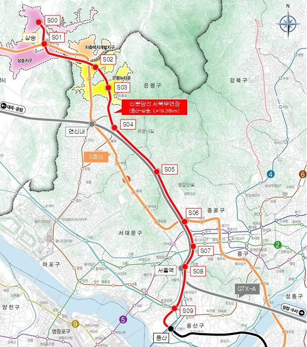신분당선 서북부연장은 기존 신분당선을 용산에서 고양 삼송까지 연장하는 사업이다. 현재 강남 신사역까지 연결된 신분당선을 용산에서 은평구를 거쳐 고양 삼송까지 이어지는 길이 19.38㎞, 10개 역사로 구성된 광역철도로 추진했다. 윤 대통령의 공약이자 출·퇴근 교통난이 심각한 서북부 주민들의 숙원 사업이다.