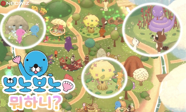 네오위즈와 게임온은 IP 계약 이후 보노보노 세계관 기반 방치형 힐링 게임 '보노보노, 뭐하니?(가칭)' 개발에 나섰다. 원작의 유쾌함과 사랑스러운 매력을 풍성하게 담아내는 데 주력한다는 방침이다.