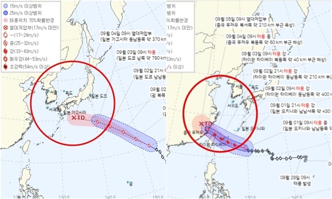 이미지 확대보기한국 기상청과 케이웨더, 일본 기상청 등이 발표한 태풍 경로 현재위치, 위성사진(태풍 경로예상 및 태풍 이동경로, 태풍 진로 예상)에 따르면 지난달 28일 오전 9시 발생한 태풍 11호 하이쿠이와 30일 오후 9시 발생한 12호 태풍 기러기가 한반도와 가까운 편이다.