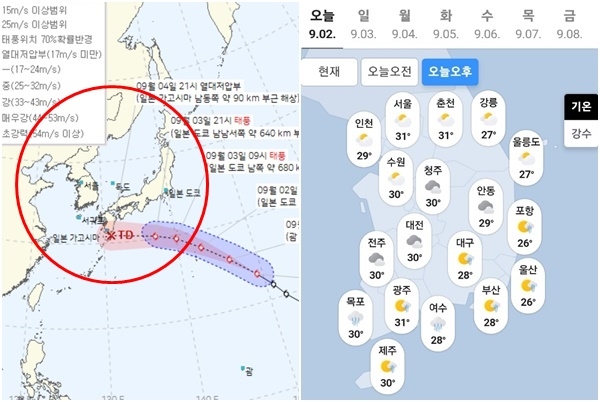 태풍경로 현재위치·태풍 경로예상, 오늘일기예보·내일(일기)날씨예보…늦더위, 남해안·제주 비