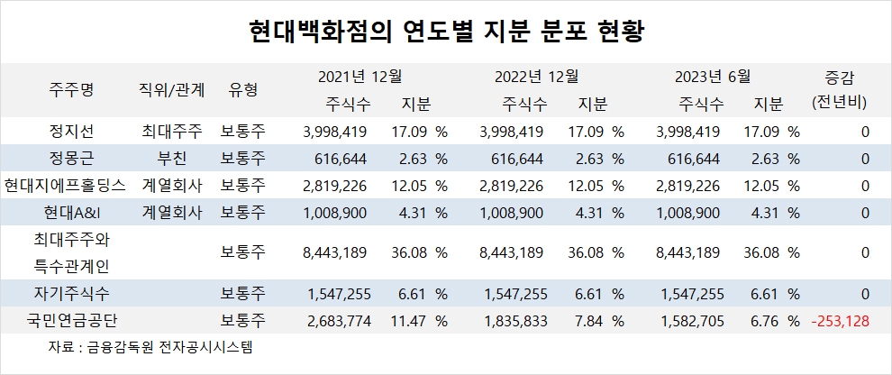 국민연금공단은 올해 상반기 현대백화점 주식 25만여주를 팔아 지분을 낮췄다.