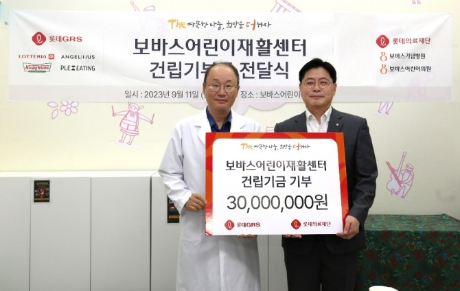 전달식에는 이원택 롯데GRS 마케팅부문장과 윤연중 롯데의료재단 보바스어린이의원 원장, 박종우 재단사무국장 등이 참여했으며, 롯데GRS는 아동들의 안정된 의료 환경 조성에 보탬이 되고자 올 해 3천만원을 포함한 총 1억원의 기금 전달을 약속했다.