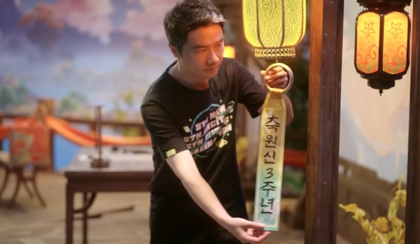 영상 말미에 류웨이 사장은 직접 '축 원신 3주년'이라는 한글 붓글씨를 쓰는 모습을 선보이는 팬 서비스를 선보였다. 그는 지난달 5일 4.0 버전 업데이트 방송에선 한국어로 "여행자 여러분, 폰타인에서 만나요!"라고 외치기도 했다.
