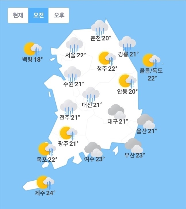 이미지 확대보기기상청 오늘내일날씨 일기예보에 따르면 낮 최고기온이 서울은 24도에 머무는 등 오늘(19일)보다 3~5도가량 낮아지겠다.